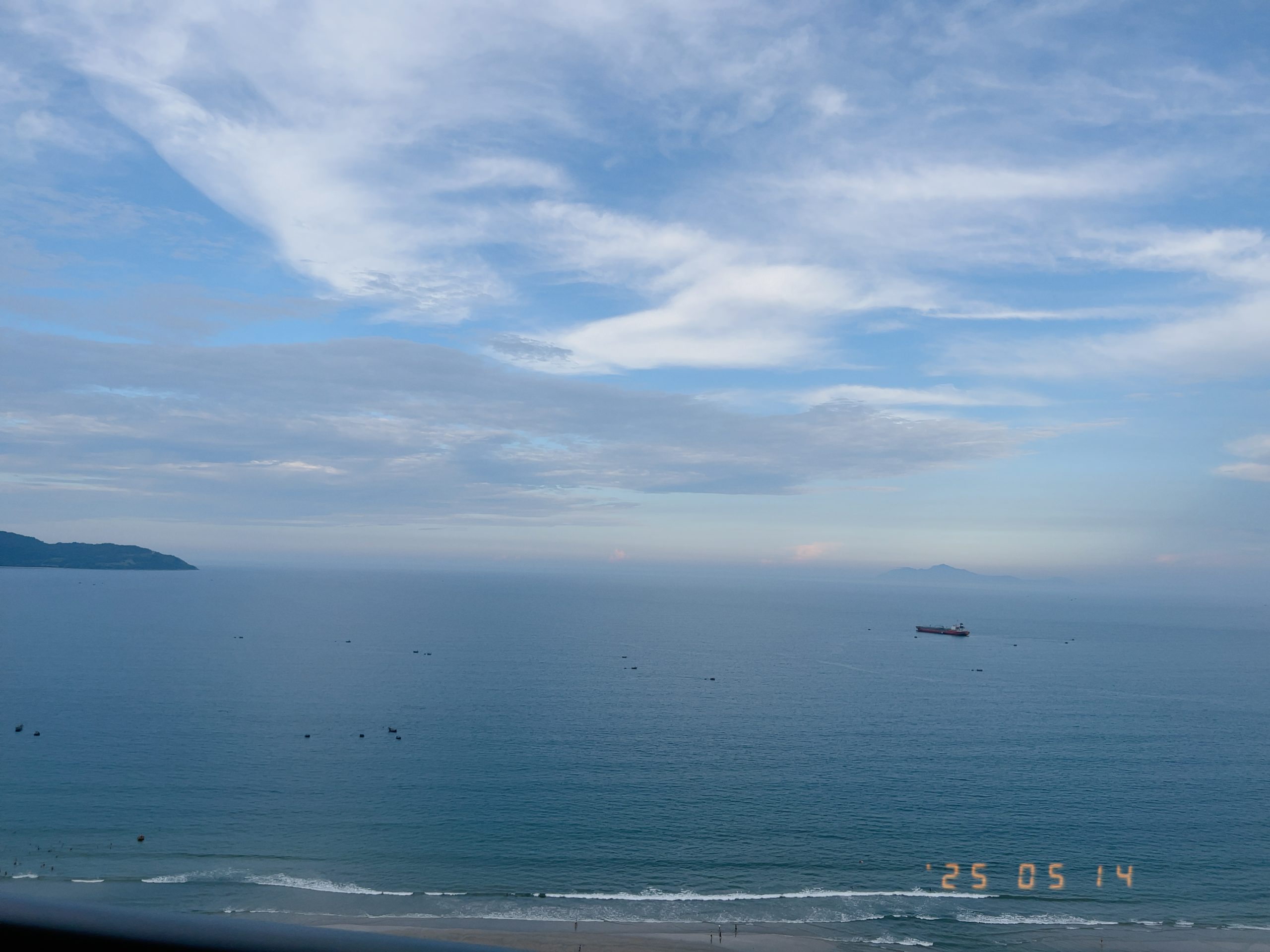 夜になるとイカ釣りの漁船が集魚灯を灯すのでそれが綺麗に浮かんでいるのが見えて、その景色、日本海沿いで見るそれと同じ様な感じなのだけど、ベトナムだと思うと不思議な感じがした。